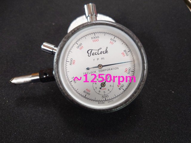 早速、動作確認します。フライス盤を1250rpmで回転させ、30mph強になりました。合っています。因みに、クロノはケーブルを抜くとそのまま、表示が残ります。