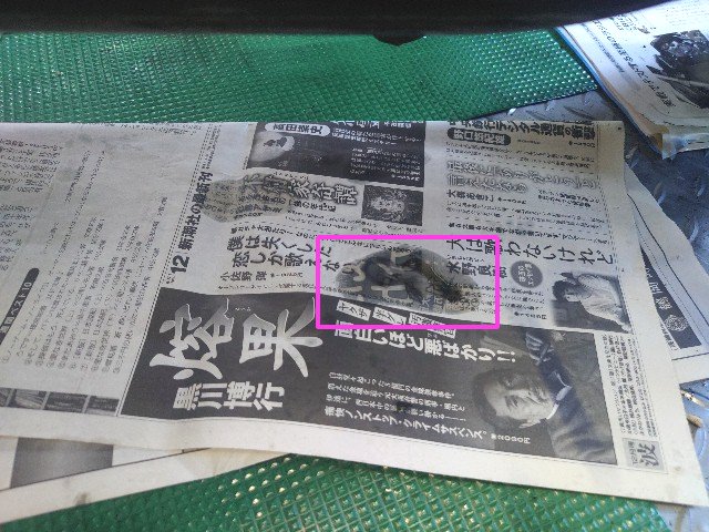 半日経ったので、ギアBOXのオイル漏れ確認しました。新聞紙に染みてました。ただ、これは上にあるバッテリ台をつたって、エンジンオイルフィルタから染みてきているようです。バッテリを外してオイルフィルタを増し締めしておきました。