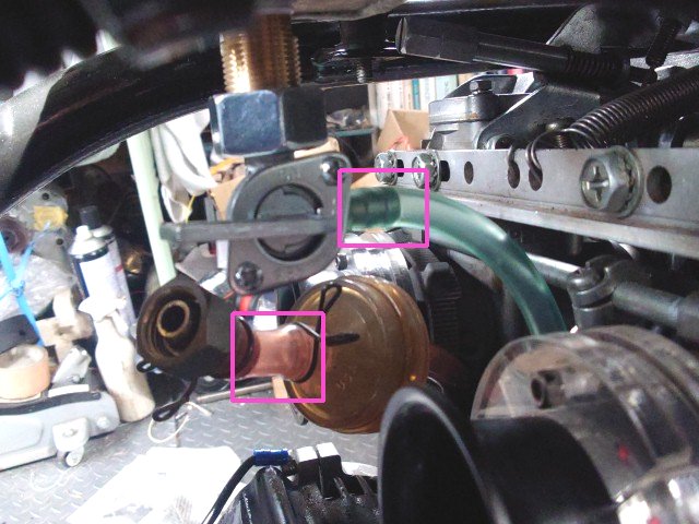 赤枠のホース径が細くなったので、細いホースが繋がるフィルタが必要です。