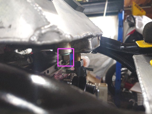 タンクの左側に赤枠の1/4テーパの出口が別にあり、ここにリザーブ用の燃料コックを追加してコックの2個使いに変更します。