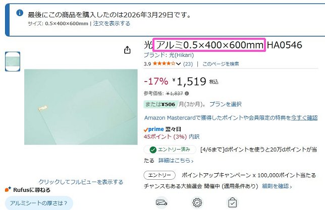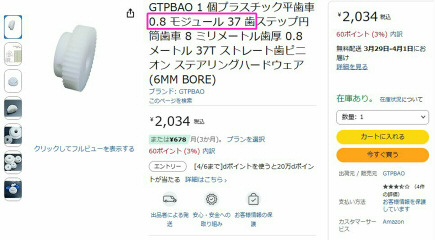 今回はPLAフィラメントなので、硬いですが、脆いです。壊れた時のためにアマゾンで購入しておきます。海外在庫で、納期が長いです。価格も2000円超えなので、とりあえず1個注文しておきました。