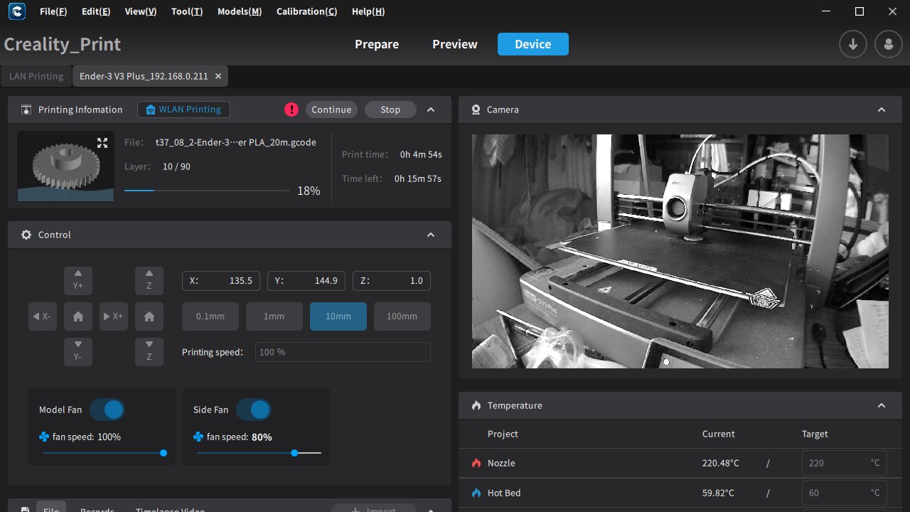 この前、家のサーバをDHCPに対応したので、別部屋の3DプリンタがWIFI経由で見えるようになっています。そりが少なく、精度のいい、PLAフィラメントを使ってプリントします。約20分で完成しました。インフィルを80%にして、シェルも厚くして強度を高めました。