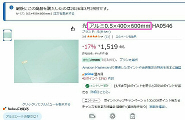 遮蔽板の0.5mmのアルミ板が到着しました。厚紙でフレーム下の型紙を作ります。