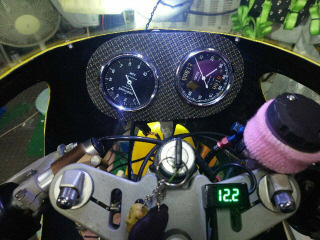 クロノのタコとスピードメータの動作確認で近所を一回りしてきました。メータは問題なく動いています。ギアBOXのオイルは試走後に新聞紙を敷いて確認します。