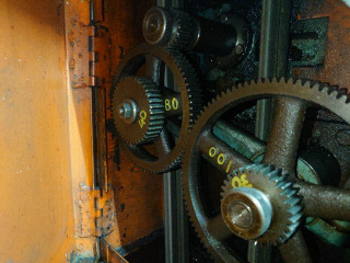 旋盤のネジのピッチのギアをピッチ1.0に設定します。ピッチ1.5の燃料コックを選んだのは、旋盤のギアが1.5になっていたからです。