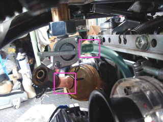 トライトン:オイルよけの遮蔽板、リザーブ付き燃料コック購入、コック取り付け変換アダプタ作製など。